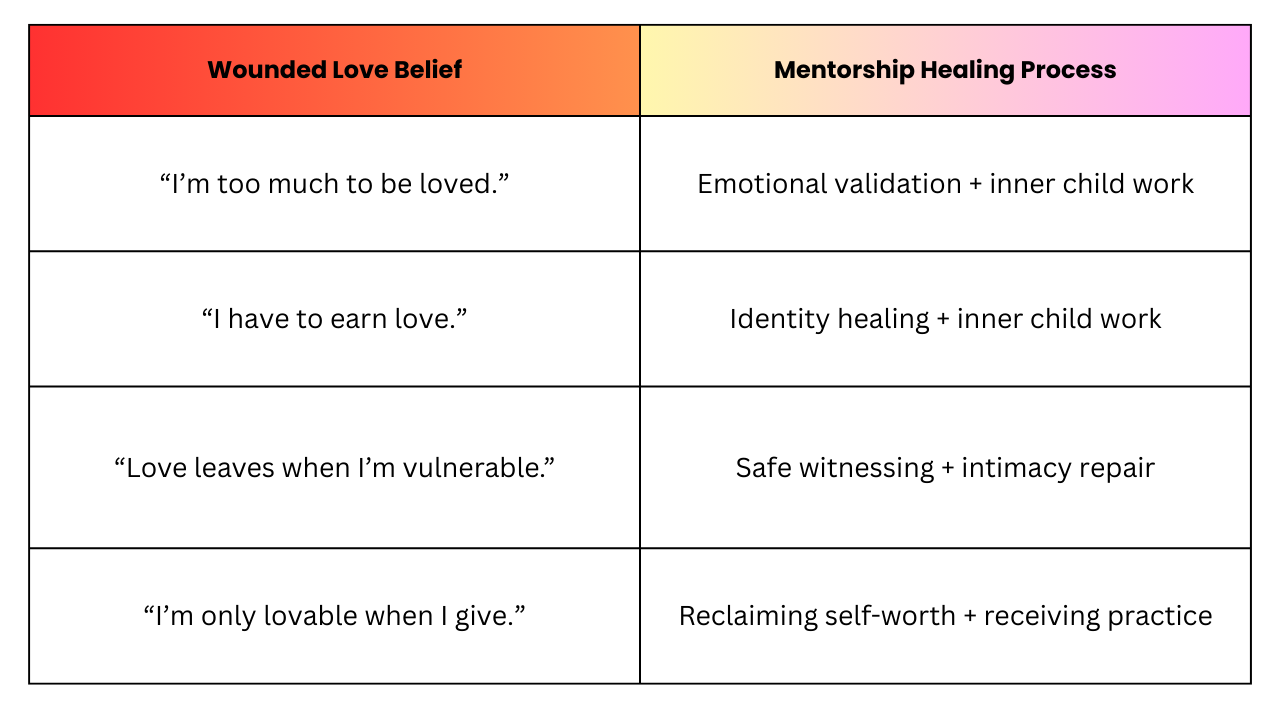 Mentors model healthy love through presence, not performance—helping you internalize new emotional truths.